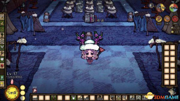 5.装备:黄金镐 黄金斧 大肉棒 木甲 猪皮帽 海象帽 格罗姆的花 切斯特眼骨 矿灯帽或手提灯 各一个