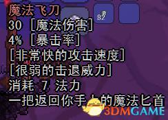 ②.掉落条件苛刻,众所周知,魔法飞刀由宝箱怪掉落,但那个萌萌的箱子下一秒也可能要了你的命。肉山后看见箱子,就先拿魔焰射一下吧....