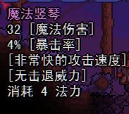好多魔法武器都有反弹和穿透这个两个特效,魔法竖琴这个武器把这两个特性发挥到了极致,首先它的伤害不错,可惜只能锻造成神器/恶魔。