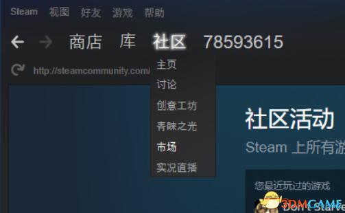 登入你的steam账号,在左上角的社区菜单中找到市场选项然后单击。