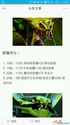 首先出厂的是剧毒术士。第一层就是20的经验加成,无论是wings的中单剧毒,还是zai妹的四号位剧毒,相信看到这条应该会相当高兴。剧毒的恶心程度想必不用多说,25级的天赋更是大大加强了剧毒的后期能力,几乎就是一座小型防御塔。剧毒术士,强无敌!