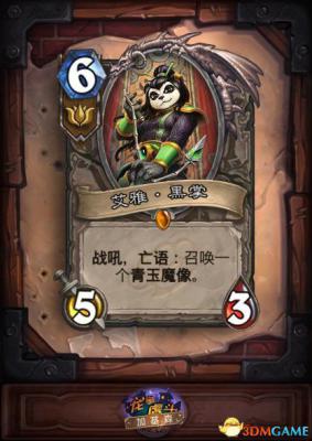 “魔像是女孩儿最好的朋友!”,相信玉莲帮爱好者们一定对这句台词不陌生,因为艾雅·黑掌是所有青玉系列卡组都会选择的一张卡牌。强大的战吼及亡语效果可以让你召唤出更多强大的青玉魔像,同时艾雅·黑掌本身的5点攻击属性也会让对面感到头疼,如果你是玉莲帮的一员,那么艾雅黑掌绝对是你最好的伙伴。