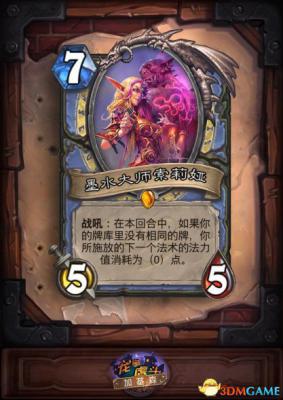墨水大师索莉娅是新版本的法师职业传说卡牌,也是宇宙法卡组的核心卡牌之一。索莉娅的战吼效果可以让你在本回合释放的下一个法术为0费,不过前提条件是你的牌库中没有相同的牌。在实际对战中墨水大师索莉娅+烈焰风暴、火焰之地传送门以及卡扎库斯自定义法术等卡牌可以轻松的完成占场+返场,是宇宙法后期取胜的必备COMBO之一。
