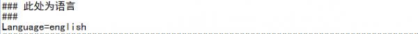 二、打开CONFIG.ini配置文件,找到“此处为语言”的位置。游戏默认为英语,如图所示:
