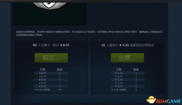 单击一件皮肤,你可以进入这件物品的详细说明页面,可以看到最新的报价以及求购价