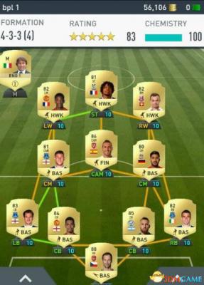 我认为433-4核心球员是cam lw 和rw 。对于cam一定要选择远射厉害的,最好吃finisher。对于边锋速度要快,最好4星skill move 以上。吃hawk