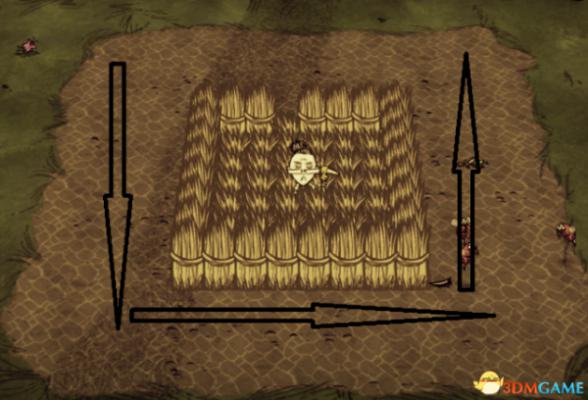 这里就不附图了。其一,围墙(最好石墙)阵型排布一样;其二外加一圈的茶几将围墙再次围住(烧掉的茶几也行),并且留一个小口可供玩家进入;其三,我们还是读触手书,读个几本。