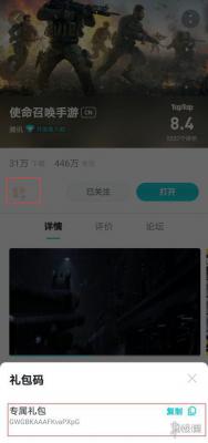 应用宝礼包:顶栏搜索使命召唤,进入详情页领取。