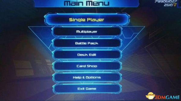 分别是, 单人,多人对战,随机对战包, 卡组整理,商店, 系统设置,退出游戏。