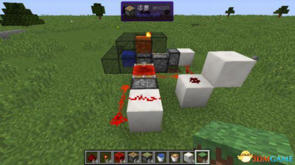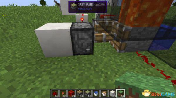 此活塞作用为推动石头,整个机器很重要的一个部分,另外这个活塞下面有一个红石火把。