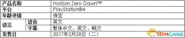 台湾索尼互动娱乐(SIET)昨日宣布,PS4游戏地平线黎明时分中文版将于2017年2月28日发售。