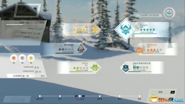 得分滑雪的模式有自由赛,特技赛,跳跃赛,极限赛,路线赛,骨折赛。