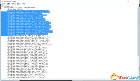 从第三行开始为身形数据,将数据全部选择后复制,然后找到你目前使用的身形文件,本人目前使用的是oni_curvy,和之前一样,右键编辑该文件:
