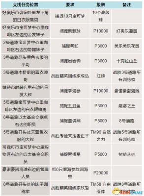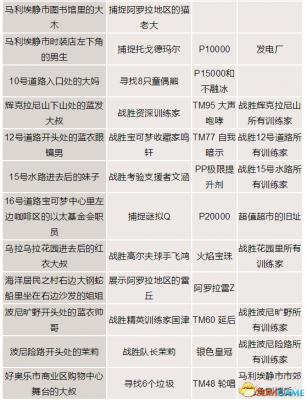 口袋妖怪日月全支线任务一览:
