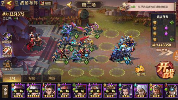 军师技能优先往重骑那一路丢,只要拦住了他们,胜利曙光就是属于我们的了,而对方前排的两个肉盾,两个步兵伤害不高,翻不起什么浪来的