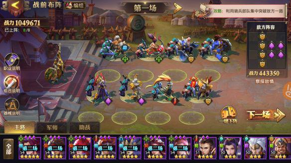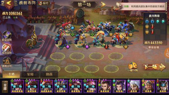 军师技能往敌军后排丢,优先消灭对面的弓箭手,减小前排的压力