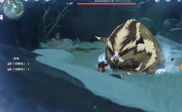 在龙脊雪山的东南方向中,有一个大雪猪王,击杀后可以获得大量的冷鲜肉;