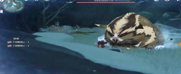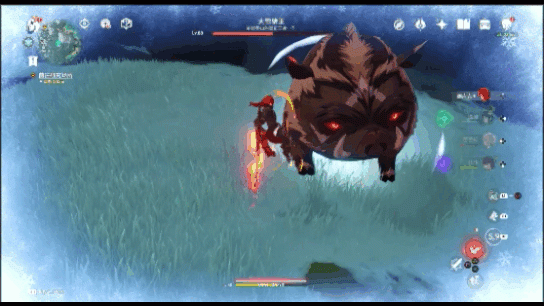 1、当我们来到雪猪的区域后,可以看到被冻住的雪猪,这是我们需要使用火元素击杀3个被冻住的雪猪;