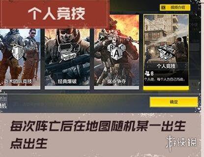 个人竞技:每次阵亡后在地图随机某一出生点出生