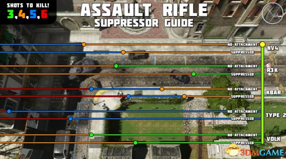 消音对于三连发的R3K影响最大,缩短60%的最大伤害射程,最不适合加消音。