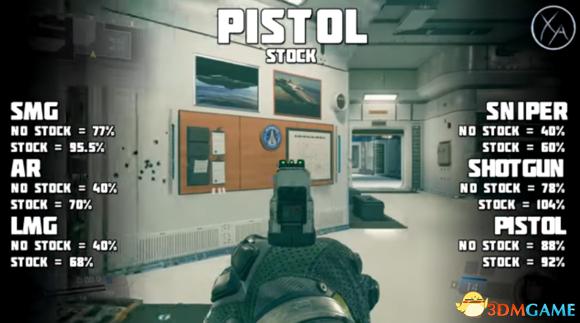 设SMG的盲射移动速度为100%,枪托效果如图:
