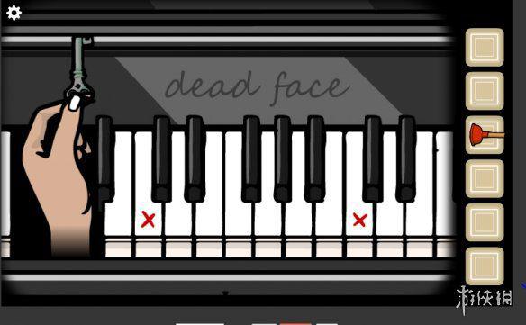 钢琴上只有dead face与红色叉记号的提示,在墙上看到提示,将提示结合,知道怎么弹钢琴了。