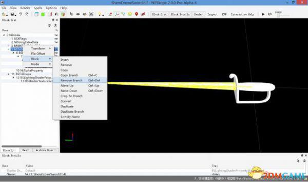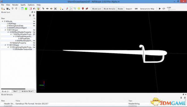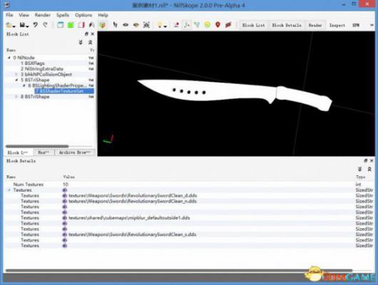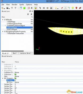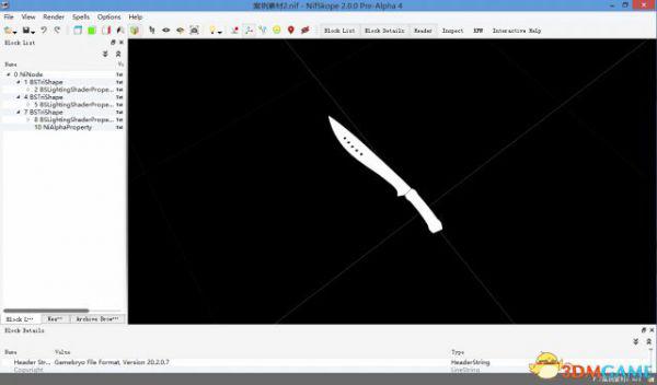 打开Nifskope,导入刚才制作的尼泊尔砍刀。