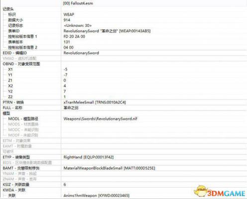 最后一步,打开Fo4edit,找到革命之剑的ESP文件并重新定义Nif文件路径。
