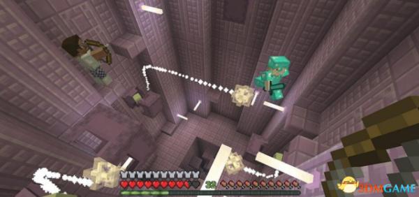 末地城!满眼都是末地船,紫影花,紫影植物以及紫柏块。尽管不能一言而论,但是有些方块或许是潜影贝,一种射击火箭弹的傀儡型敌人。被击中你就会受伤,同时感受到一种新鲜的感觉,对,漂浮!鞘翅是必须的,不然着陆的时候可有苦吃了。