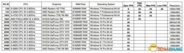根据帧率图表情报,GTX1070显卡才能流畅游玩,入门配置AMD7700仅8帧率,采用GTX970显卡亦可流畅游玩。