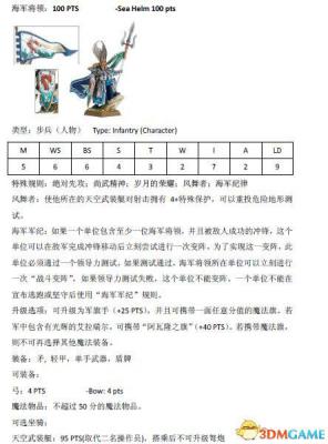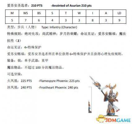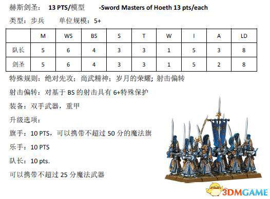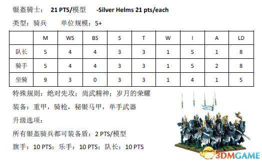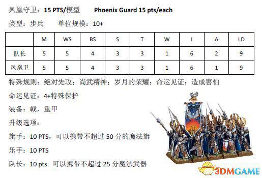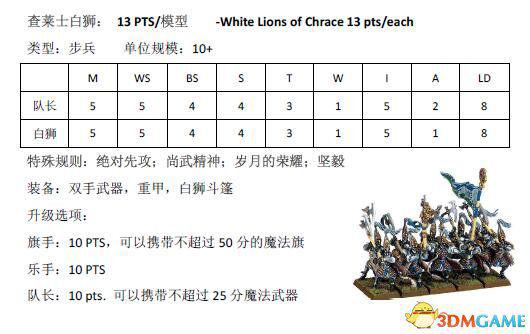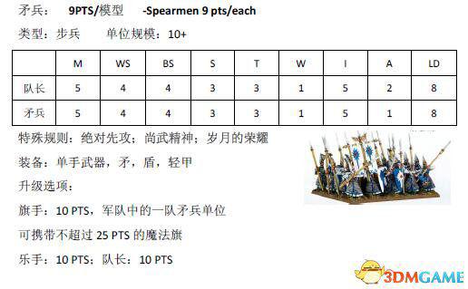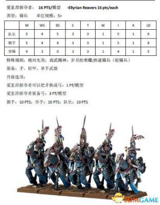 跟木精灵篇一样,本文也是由scr8388268在中古战锤8版规则书中查阅后分享的结果。下面为大家带来高级精灵兵种的兵种属性。