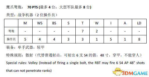 最后是高精的攻城武器,鹰爪弩炮,规则里还能散射。