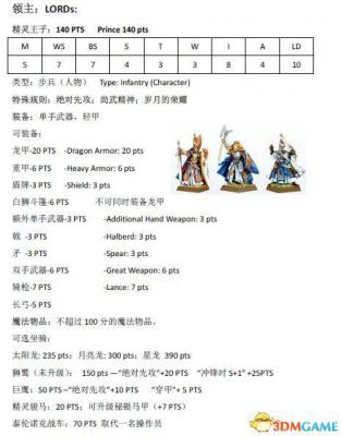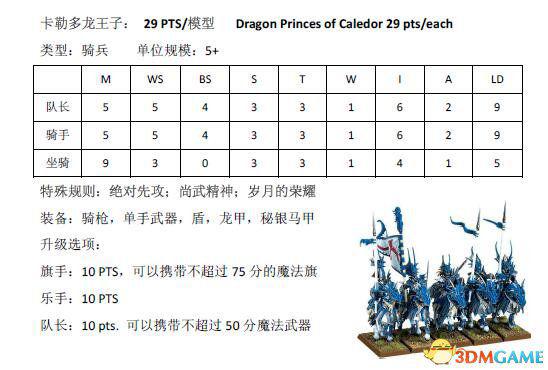 作为普通领主的精灵王子,能骑龙和战车,不过听名字应该没有妹子模型,一大遗憾。