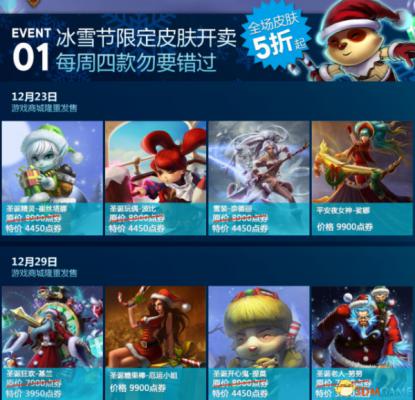 喜迎LOL2016冰雪节,lol2016冰雪节半价皮肤官方已经放出购买地址,每周四款,全场皮肤5折起。
