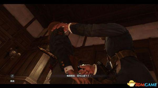 这时候其实可以直接溜走而不理会见室内的两名叛兵,不过为了谨慎起见(如果兰姆西发现刚才两名倒下的守卫),那么就先击晕调查出口处的叛兵,然后就是对付坐在一幅画上的守卫。