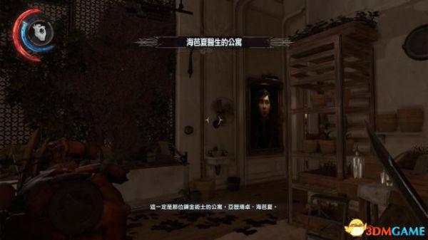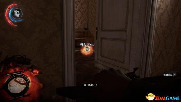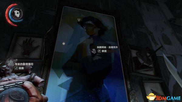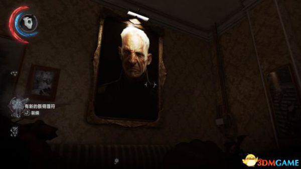 内进后在展示柜中拿到一个骨符(1/8) ,在展示柜正对着的墙上拿到一幅画作——《兰姆西的或然双眼》(1/6) 。