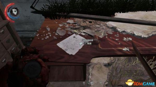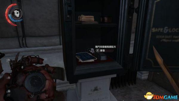 这条走廊只会通往一个房间,内进后在门口正对的红色桌面上搜刮到保险箱密码,得知房间左侧的保险箱密码为“729”,打开保险箱获得一份蓝图——《战斗用昏睡飞镖配方》。