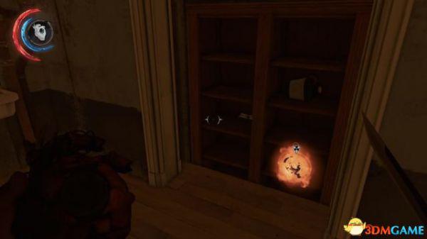 稍作躲避,它就会站在楼梯的门前,从旁侧的楼梯翻到其身后打开双扇门内进(二层道路是捷径,需要之后才能开启)。