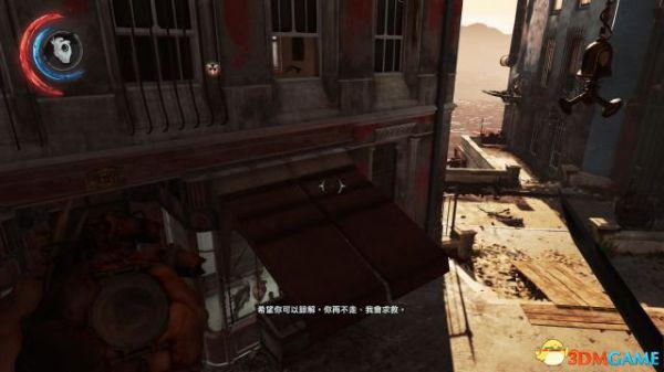 回到街道上,在斜坡处会看见叛兵跟两名佣兵和一名叛兵在作工作交待,当他们结束后,将讲话的叛兵击晕并拖入到Dr. Galvani办公室的入口,如是者可以击晕另一名的佣兵,然后穿过街道从右侧的道具去到两根倾斜支撑柱,然后爬到一个小庭院内。