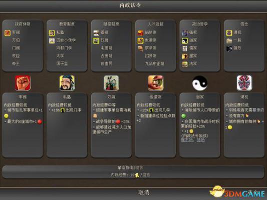 这次的政策树里将可以加入诸如九品中正制、世兵制、屯田制等政策名称和效果了。而且政策的变动也将更加灵活。