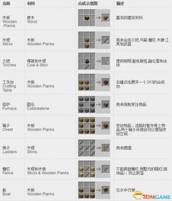 我的世界基本合成表: