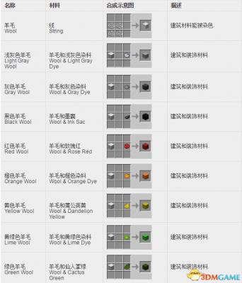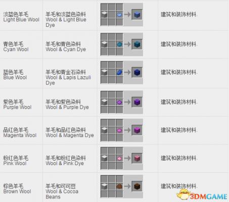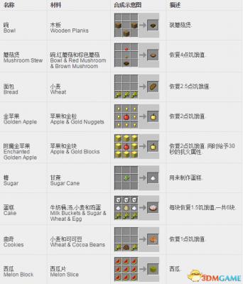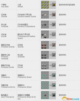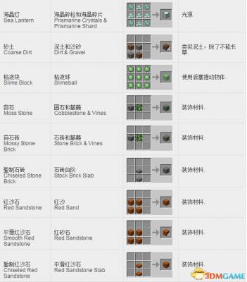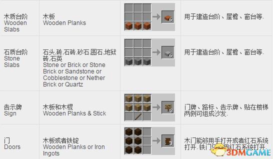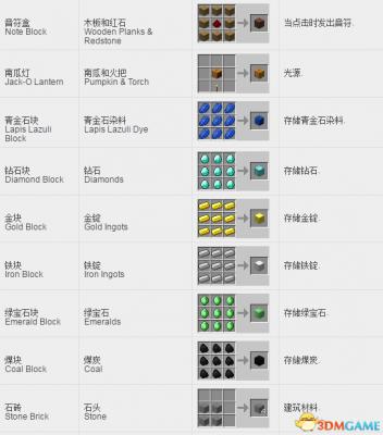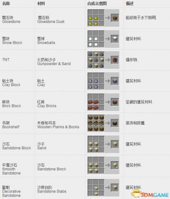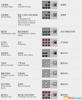 我的世界方块合成表:
