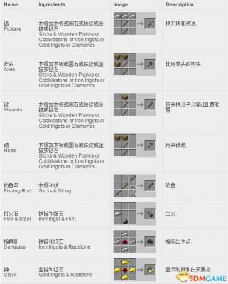 工具合成表: