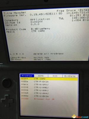 可以看到,上屏显示了关于安装或者删除CIA一些按键说明。