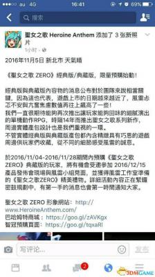 《圣女之歌ZERO》预售分为经典版和典藏版,游戏时长10小时,于2016年11月28日前购买圣女之歌零典藏版的玩家,将有机会受邀参加12月15日的产品发售会,预购现在已经开始。