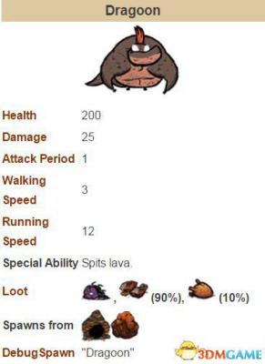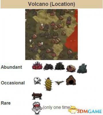 在所有的被淹区域完全干了之后不久(很细节噢),火山会喷发。每次喷发之前都会震动三次!这给了玩家稍多于半天的时间去准备。火山喷发时,龙人蛋会从天而降,下落时会在其落点显示黑影,其会在玩家视野范围以及稍多于视野范围的范围内砸落。
