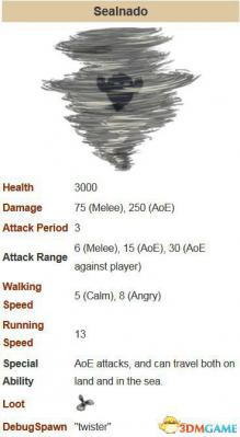 血量在10%以下时(250HP)会撤退回窝,但如果离窝太远则会“消亡”(despawn,字面意思是反生成,是彻底从世界中消失,所以打了一半让它跑了的话,就不用找了,哪都没有)。一旦消亡,需要一定的冷却时间,这期间无论做什么虎鲨都不会再出现。