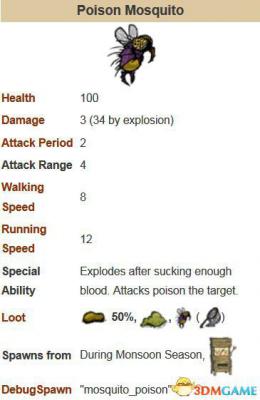 免疫物理类型的毒系攻击(只能防毒蛇、毒蚊、毒蜘蛛)。