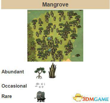 红树林特点为由水覆盖的绿色地皮。这其实被认为是一种岛屿生态(的确,红树林都是生长在浅滩),但玩家必须坐船在上头移动。红树林里有红树林木和草。水牛通常在该生态地形中或者在其周围。红树林木和草只能通过坐船才能够到(也就是说如果你在岸上,不管离草多近,都是够不着的)。