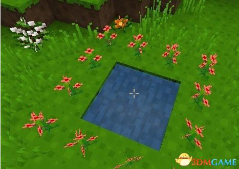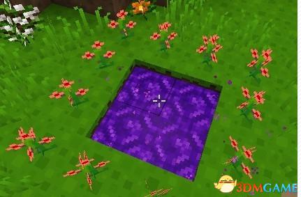 暮色森林的传送门制作方法和前面的就有些不同了,这个需要先挖成,比如上图来说,我们在地面上挖2*2*1的坑,将水桶里面的水倒到挖的坑里面,倒里面之后下一步在挖的坑周围种你准备的花,